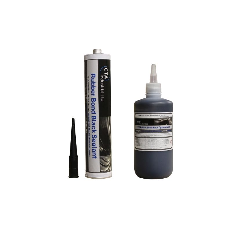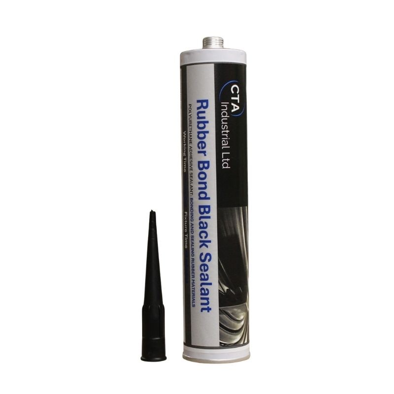 CTA Rubber Bond Black Sealant is a one-component, fast-curing polyurethane adhesive designed specifically for bonding and sealing rubber materials. Its high-modulus, elastic formulation forms a tough, resilient bond that maintains flexibility under stress and vibration — ideal for both solid and flexible rubber components.