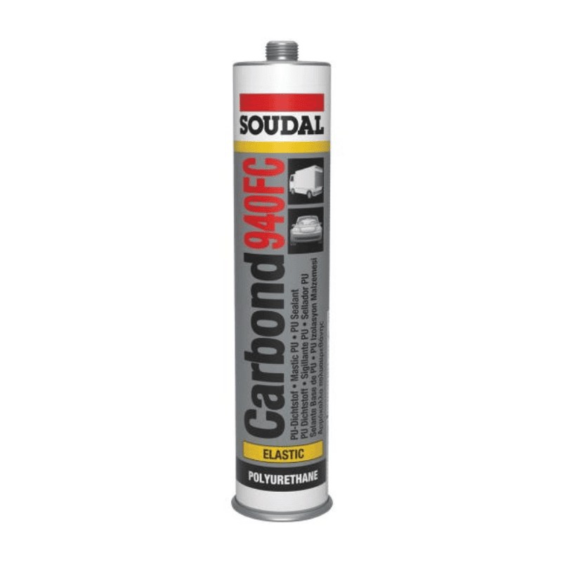 Soudal Carbond 940FC is a PU sealant adhesive for body repair. It is a high-modulus PU sealant-adhesive with excellent mechanical performance and chemical resistance for a wide range of bonding and sealing applications on metals and polyester. The product is permanently elastic and watertight, with excellent resistance to many chemicals. It offers good colour stability and is weather- and UV-resistant. It can be painted with most water-based paints and provides very good primerless adhesion to many materials, including aluminium, steel, GRP, and epoxy coatings.