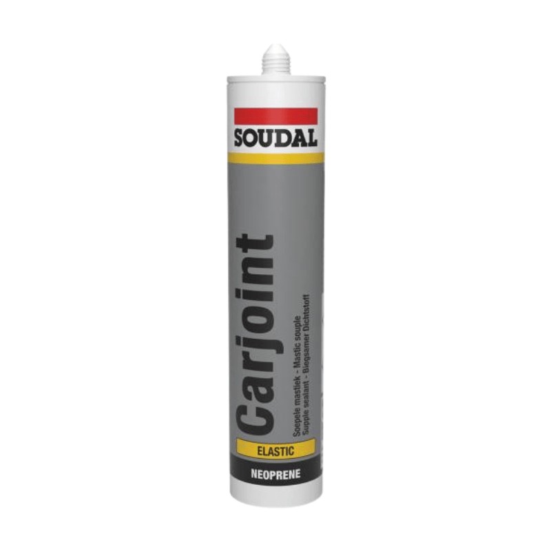 Soudal Carjoint is a sealant for body repair. It is a neoprene rubber–based, solvent-based sealant used for sealing metal parts and ventilation shafts prior to mechanical fixing. The product is easy to remove once the fixing has been released, can be painted, has high temperature resistance, remains elastic, and is watertight.