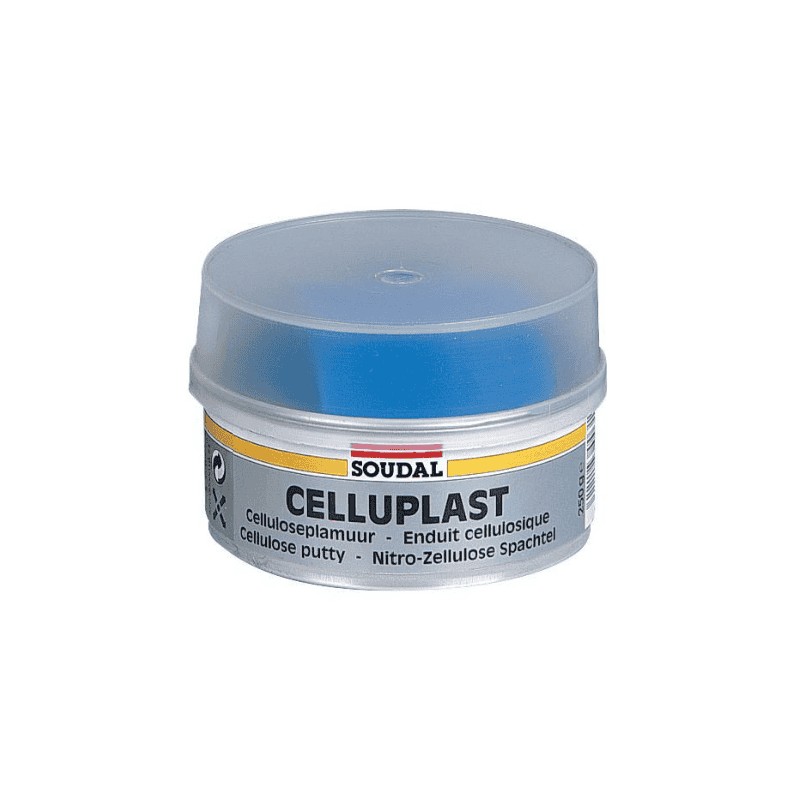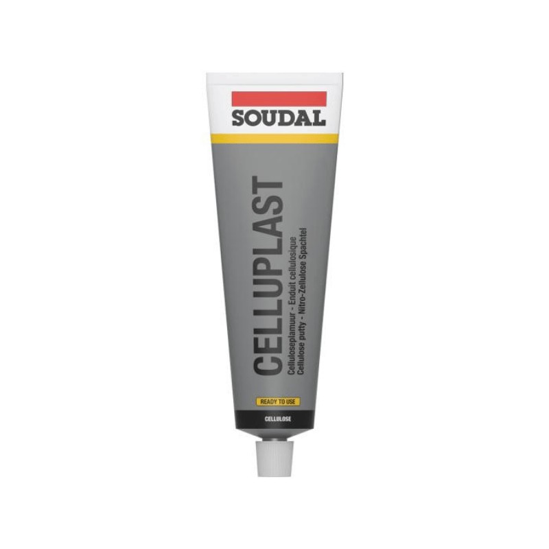 Soudal Celluplast is a finishing filler for body repair. It is a single-component, nitrocellulose-based finishing putty for repairing light damage and scratches. The product is especially suited for small repairs and scratches and can also be used as a finishing layer prior to varnishing or spray painting.