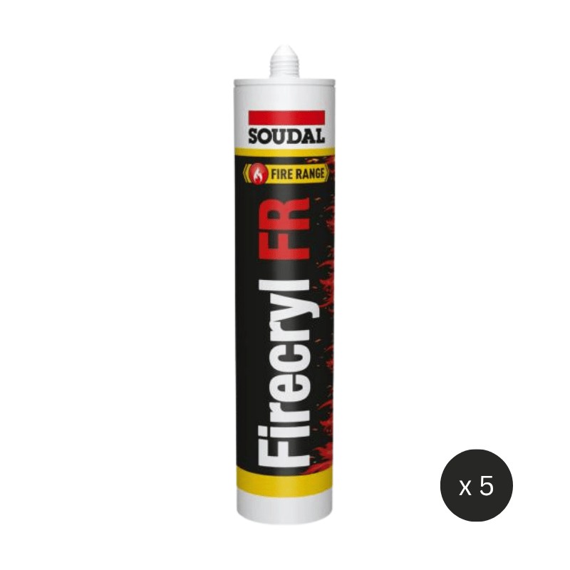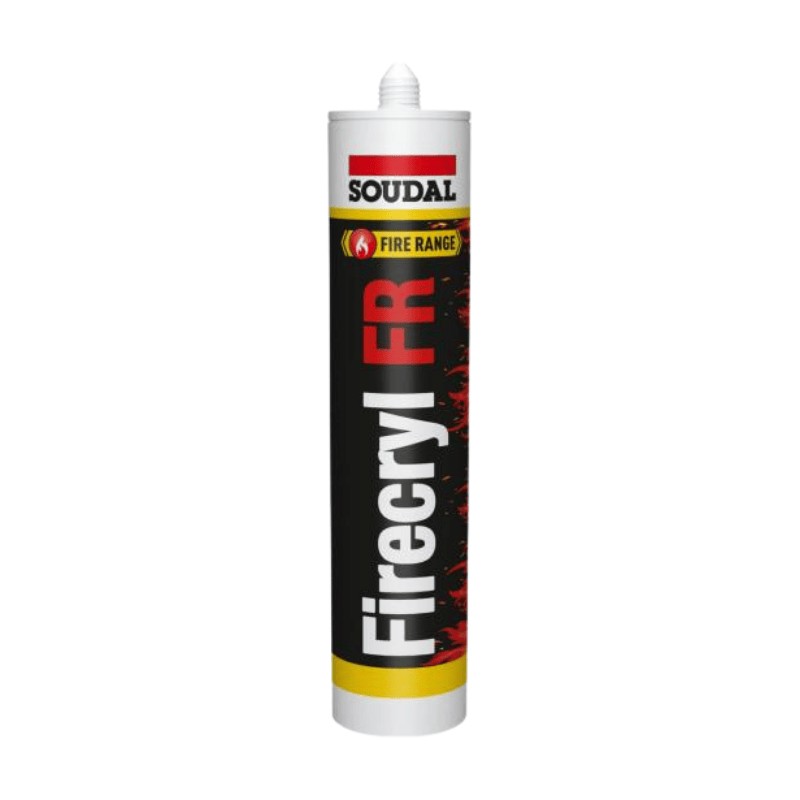 Soudal Firecryl FR is a fire-resistant acrylic sealant and filler with a fire rating of up to 4 hours. It is intumescent at temperatures above 120 °C, preventing the penetration of smoke and fire through joints and gaps. The sealant can be painted over after curing, is odourless, and offers primerless adhesion to most construction materials. It conforms to all international standards, including CE marking.