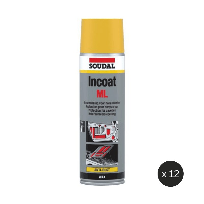 Soudal Incoat ML Aerosol is an anti-corrosion protection product for body repair. It is a sprayable coating designed to protect cavities against rust and corrosion. The product dries quickly and forms a durable, water-repellent brown film once dry.