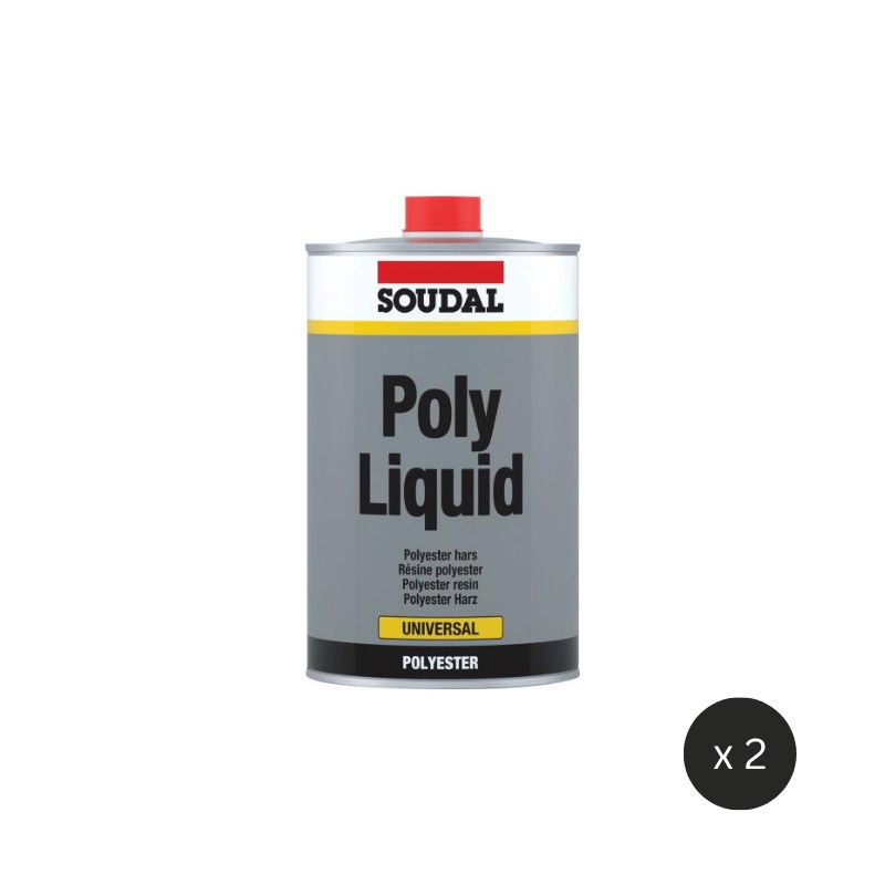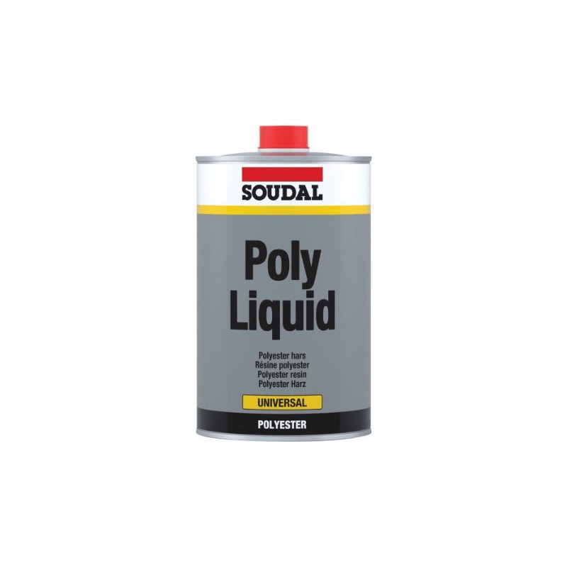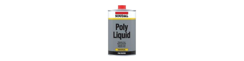 Soudal Poly Liquid is a polyester resin for body repair. It is a pre-accelerated, two-component polyester resin used together with fibreglass tissue to repair tears, holes, gaps, and cracks in metal, timber, and polyester surfaces.